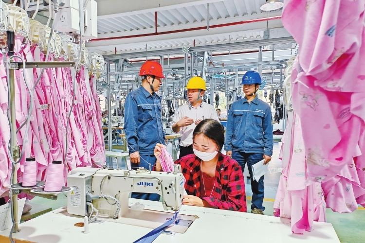 紅河河口供電局工作人員到中國(云南)自由貿(mào)易試驗(yàn)區(qū)紅河片區(qū)服裝產(chǎn)業(yè)園開展上門服務(wù)和走訪。 子曉東 攝