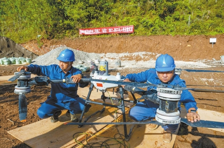 項(xiàng)目人員在無人機(jī)起飛前仔細(xì)檢查設(shè)備。